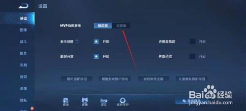 3、进入设置后,点击基础,然后开启MVP动画展示完整版即可