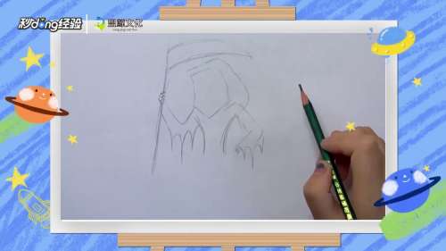 5向上起笔用直线和弧线画出死神手中的刀。