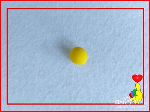 取金黄色彩泥适量,滚搓成小圆球。