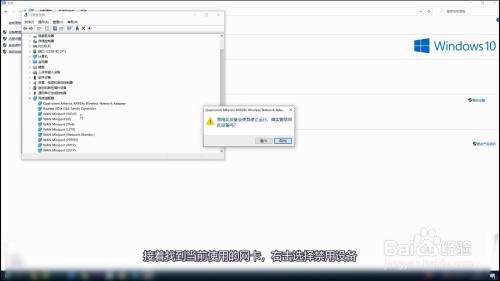 3、接着找到当前使用的网卡,右击选择禁用设备。