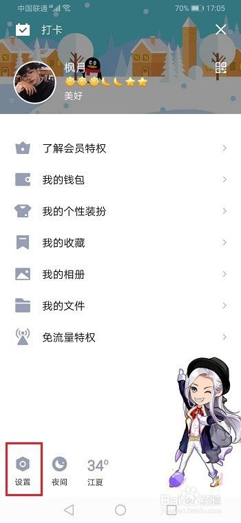 第一步打开手机qq侧边栏,选择设置,如下图所示: