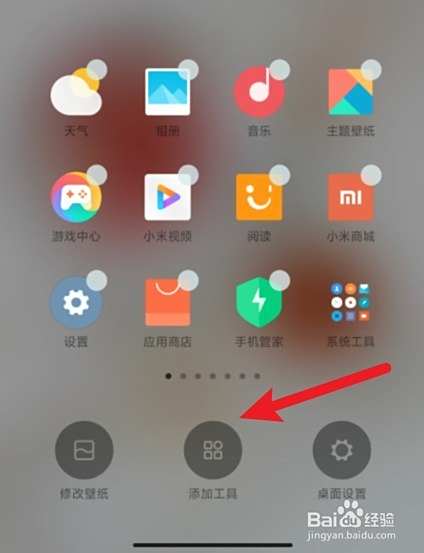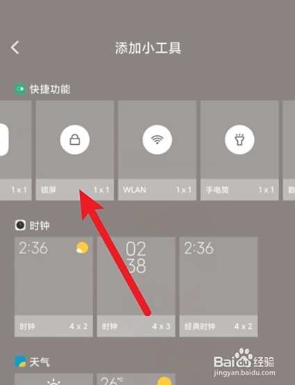 进入小米手机主界面,可以在桌面编辑页面中,选择添加工具,选择锁屏,将其放在桌面。