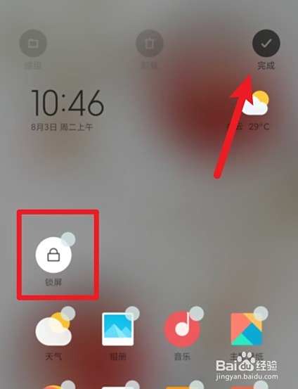 直接点击右上角的完成,可以添加一键锁屏,放在桌面。