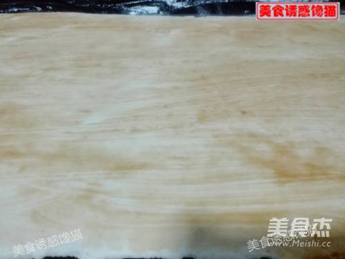 3将发酵好的面团排气,擀成长方形面片