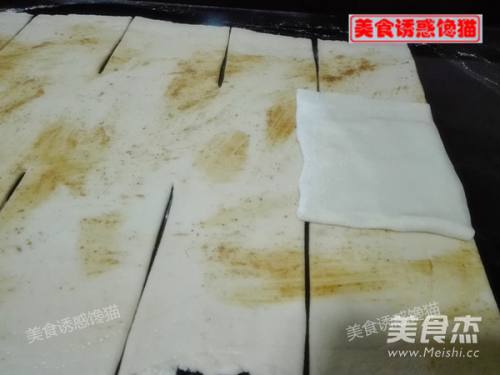 4在面片表面刷一层食用油,撒些盐,抹一层芝麻酱
