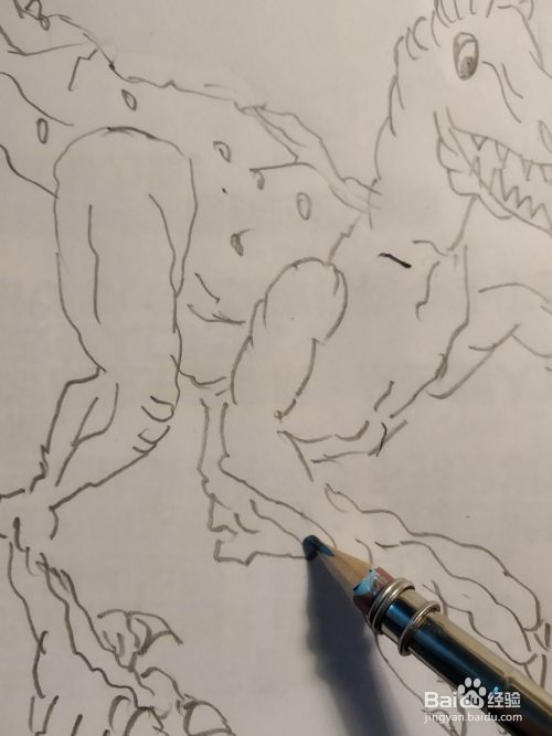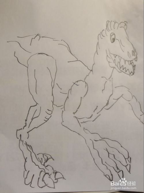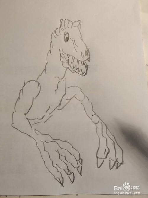 接下来画他的两个前肢,和两个前爪,它的前爪非常的硕大,前面还有长长的指甲,具有很强的攻击能力,
