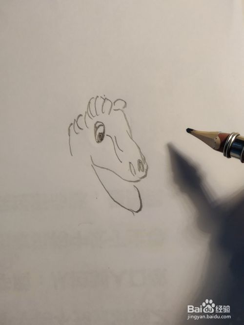首先我们用铅笔先画恐龙的眼睛和头部,他的头部偏长嘴巴很大,