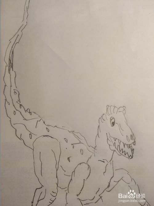 最后画它长长的尾巴,它的尾部在奔跑跳跃中起到平衡的作用,而且尾巴也是一个很强有力的武器,