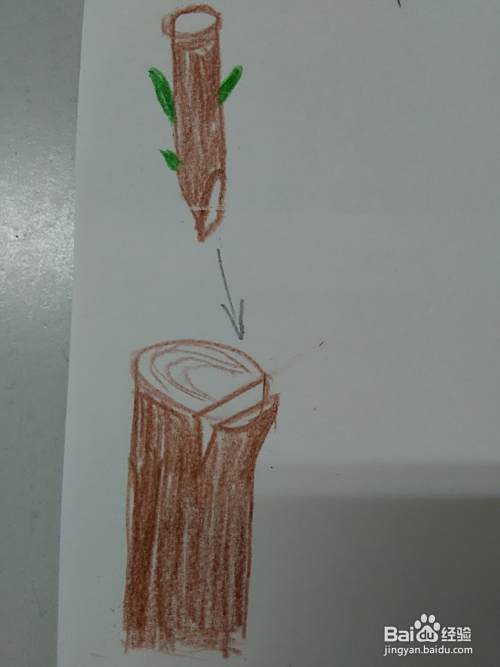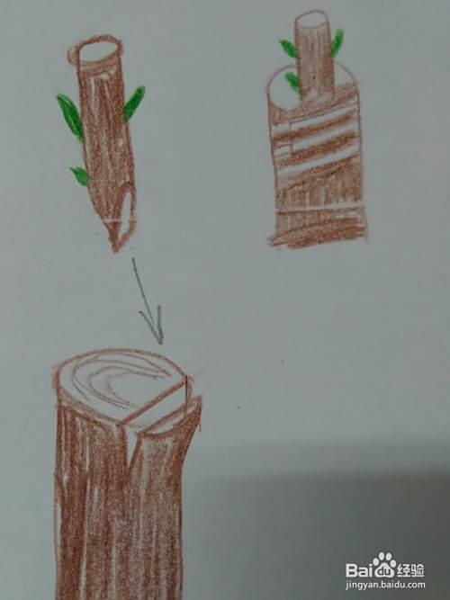 第二种方法:把大树干,从侧面用小刀切一个T字的裂口。