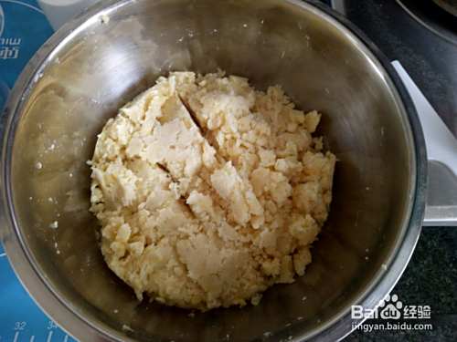 蒸好大概是这个样子,稍微用刮刀压碎!同时用刮刀把边缘的也刮下来!