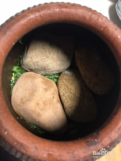 用力压实后再压上重物,然后密封20多天后打开食用