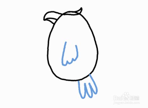 添加脚并画一条曲线以勾勒出鹦鹉的腹部。