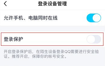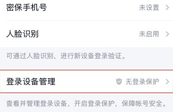 进入帐号安全设置界面,点击登录设备管理选项进入。把登录保护的开关关闭即可。