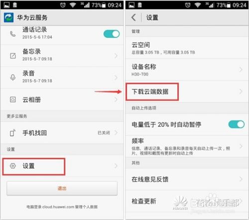 在华为云服务首页点击设置》进入设置页面》点击”下载云端数据“。