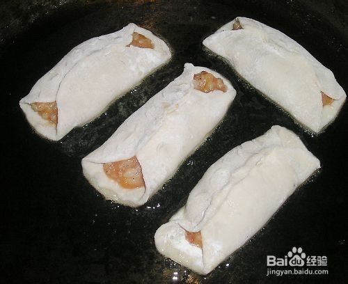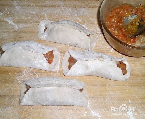 两端不要捏紧,只捏好中间的,逐个包成锅贴胚备用。