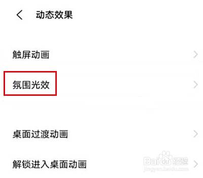 在动态效果界面,点击氛围光效进入。