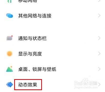 进入设置界面,点击动态效果进入。