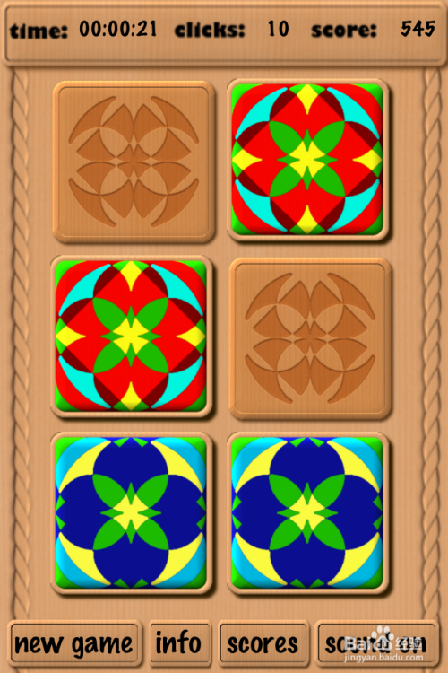 选择好之后,点play就可以开始了,图中有六个方块,随便点开3个,根据记忆找到相同的两块,直到6块全部找到为止。