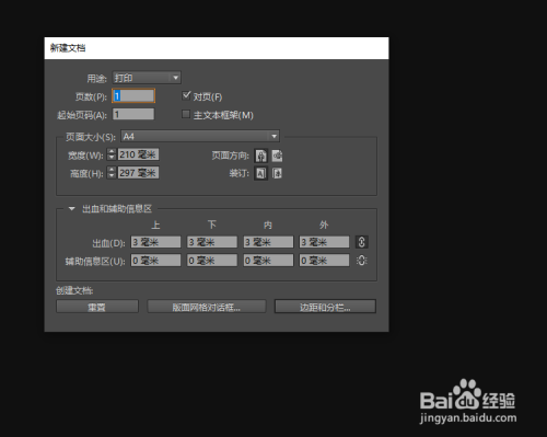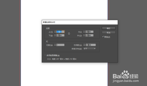 新建之后都会跳出一个对话框,这是设置版面的距离和你一个版面要划分的板块,根据自己的需求定制。
