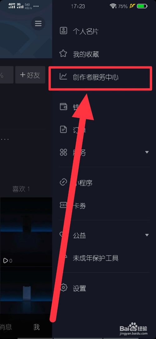 接着点击右上角的三个横的功能键,然后找到并点击创作者服务中心,在这里会告诉我们,需要添加商品链接我们需要达到哪些要求。