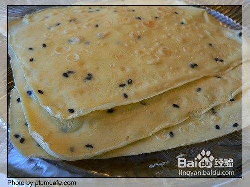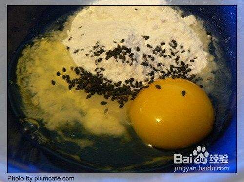 同时准备做薄饼:一颗鸡蛋,少许面粉,盐,一匙黑芝麻,加水调成可以自由流动的稀稀的面糊糊(搅合到没有面疙瘩的程度)。