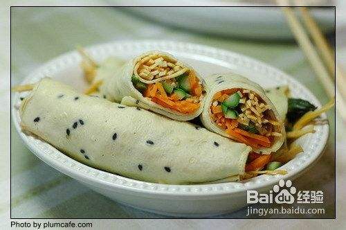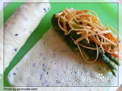本经验介绍蔬菜百叶蛋皮卷的做法