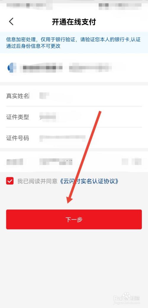 在开通在线支付页面,确认好个人信息后,点击下一步,进入密码设置页面,进行密码设置即可。