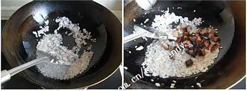 热锅凉油,油热之后倒入洋葱爆香,加入酱肉丁一起翻炒几下。