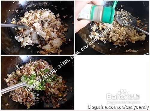 不停的将米饭拨开翻炒直到米饭变得松散,在锅子跳舞为止,撒入少许盐,黑胡椒碎翻炒,入葱花关火翻炒均匀即可