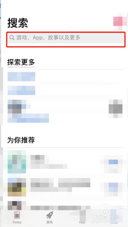 在APP STORE页面中,点击右下方的〔搜索〕,如图所示: