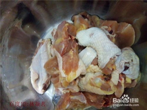 将鸡肉洗净,加1克盐,3克料酒,腌一下待用。