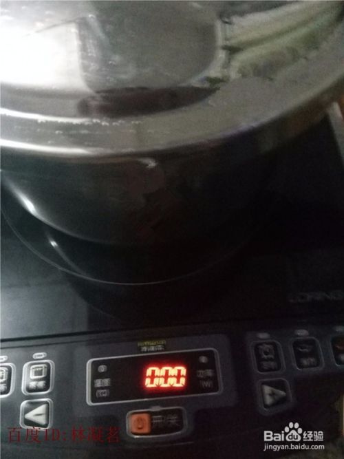 电磁炉开大火,将鸡汤煮开(出气阀出气时即开了,会发出吱吱的声音。)这时关小火,设置定时12分钟。