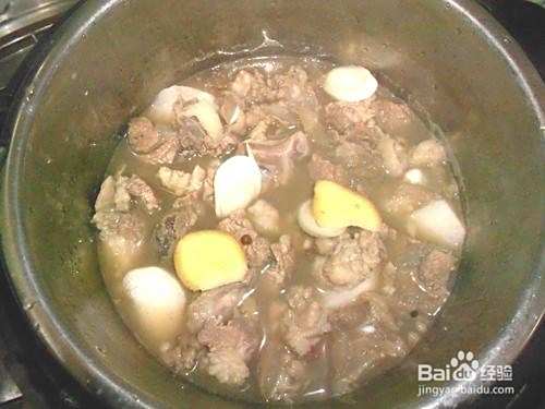 锅内放入少许油,放入葱花姜丝炒香,放入牛腩、料酒翻炒至变色,加入适量水大火烧开。
