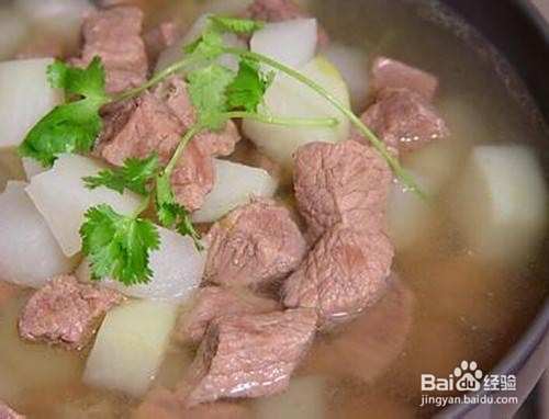 放入白萝卜炖30分钟,放入白胡椒粉、盐、味精调味,出锅撒点香菜即可。