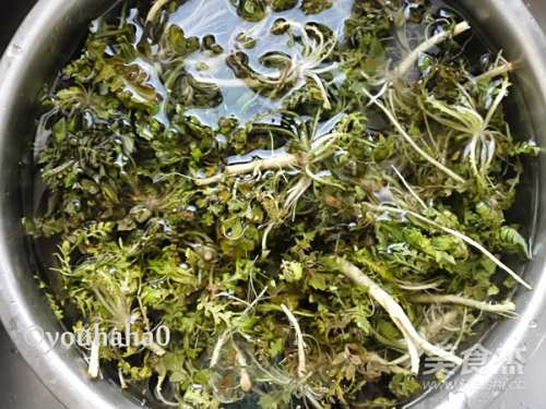 1新鲜的荠菜,荠菜好吃真难择,得一根一根的择掉老叶,荠菜的根不要去掉,清水浸泡后清洗干净