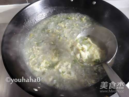 7一个鸡蛋打散淋入锅中,烧开后用少许的盐调味即可出锅END