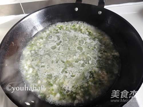 6水开后全部拨入拨入锅中,用饭勺推匀,继续大火烧开