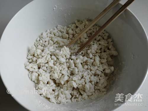 5剩米饭中放入面粉,三碗疙瘩汤的分量,大约需要面粉60克左右,稍加一点水拌匀就成了面疙瘩