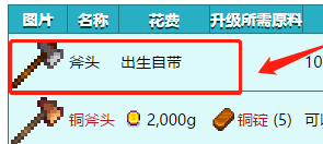 斧头用来砍树从而获得木材和树脂,从大树桩或者大原木收集硬木.使用斧头攻击敌对生物会造成轻微的伤害。