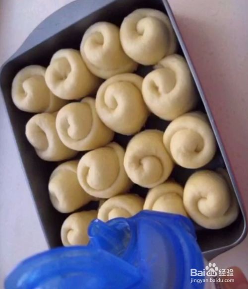 放入烤盘中,醒发至两倍大,烤盘中倒入适量食用油