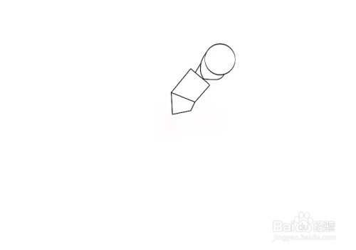 在圆圈下面为她的下巴和下巴附加一个U形。为她的上躯干画一个不规则的盒子,并把另一个放在下面,作为她胃的一部分。用一条线连接头部和躯干。