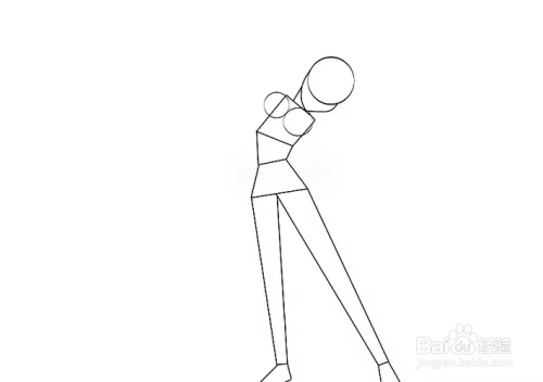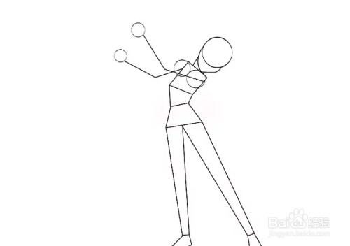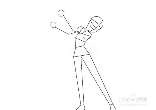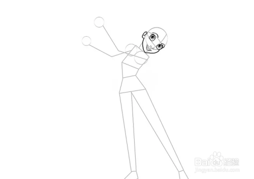 在躯干上部画一对圆圈。在每一个圆圈上,在她的手臂上贴上有角的线条,作为一根棍子的在这些线的每一个尖端放置一个圆圈。