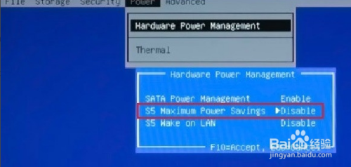 确认“Power”->“Hardware Power Management”->“S5 Maximum Power Saving”为“Disabled”。