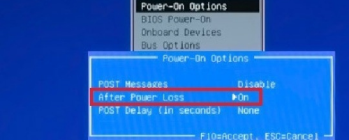 按照以上的设置,就可以实现外界用电环境通电时,主机在S5(关机)状态的自动通电开机。相反,如果不想使用此功能,请将选项从”On”修改为“Off”。