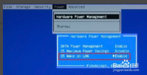 设置“Power”->“Hardware Power Management”->“S5 Wake on LAN”为“Enable”。