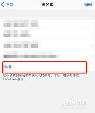 点击最下方的〔新增〕,再添加阻止通讯人名单,即阻止该联系人信息,如图所示: