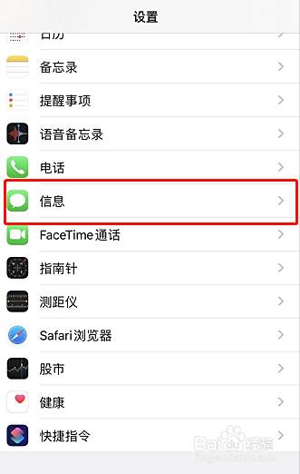 在设置页面中,下滑,找到〔信息〕,如图所示: