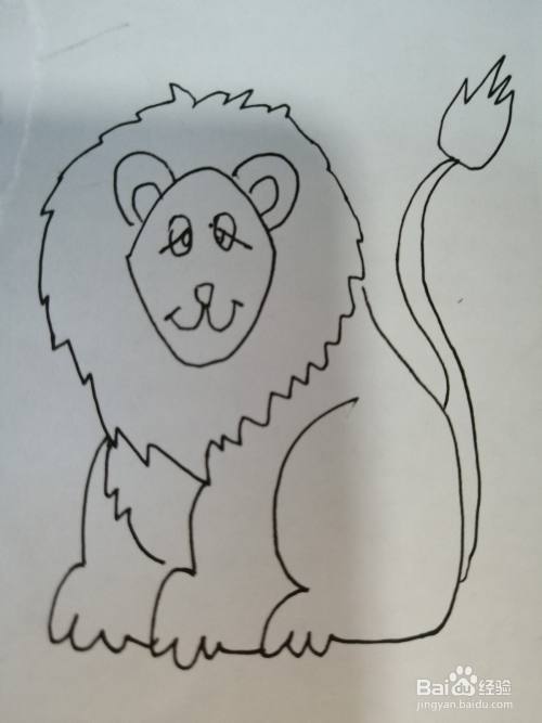 第七步,最后把简笔画可爱的狮子的小尾巴画出来。简笔画可爱的狮子就画好了。