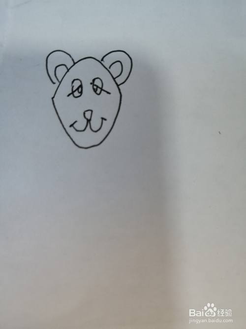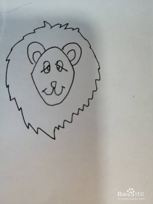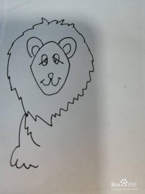 第三步,然后吧简笔画可爱的狮子的鼻子和微笑嘴巴画出来。