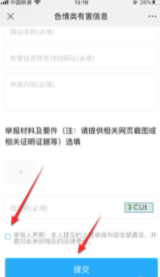 填好以后,勾选最下面的“举报人声明”,点击“提交”即可。